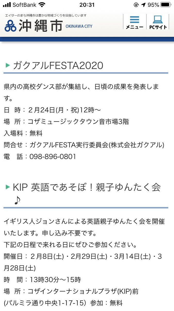 沖縄市ホームページなどで掲載頂き感謝
