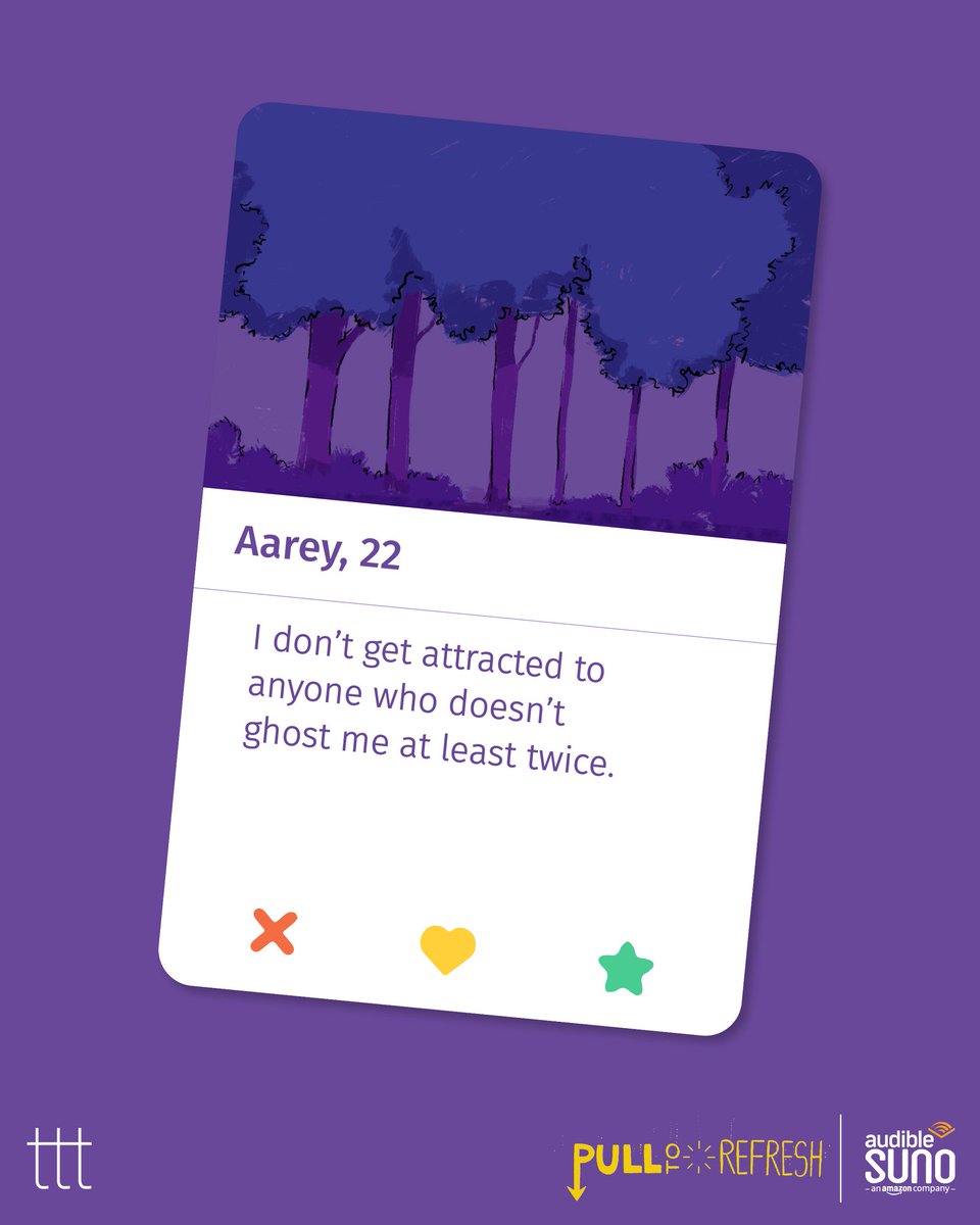 #PullToRefresh - 2/5 Dating app bios for bitter people. Listen to our podcast on Audible Suno at - http://bit.ly/PullToRefreshByTTT …pic.twitter.com/7oQktQEDIO