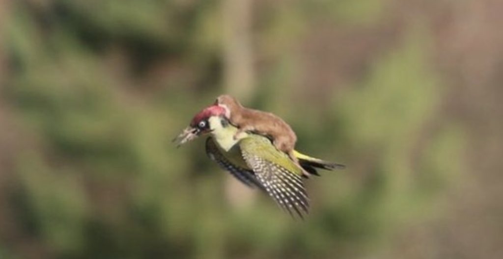 Love how at first glance it’s just a beautifully captured cardinal in mid flight then you see the mouse!
