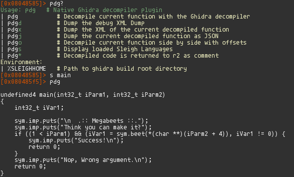 @radareorg users can use the Ghidra decompiler plugin from the command line using r2's package manager. Simply execute "r2pm -i r2ghidra-dec" to install the plugin. Check the documentation to learn how use r2ghidra-dec from radare2 --> https://github.com/radareorg/r2ghidra-dec#usage …pic.twitter.com/9QyobJarlr