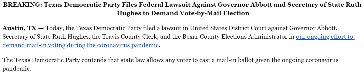 TDP is all over the map with these cases. In the state case, argues risk of #coronavirus makes everyone disabled for purposes of voting by mail.