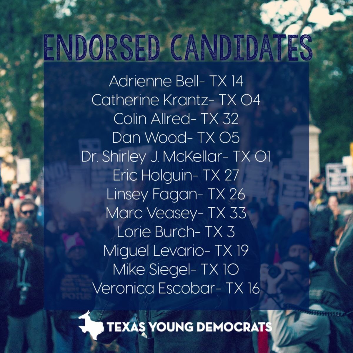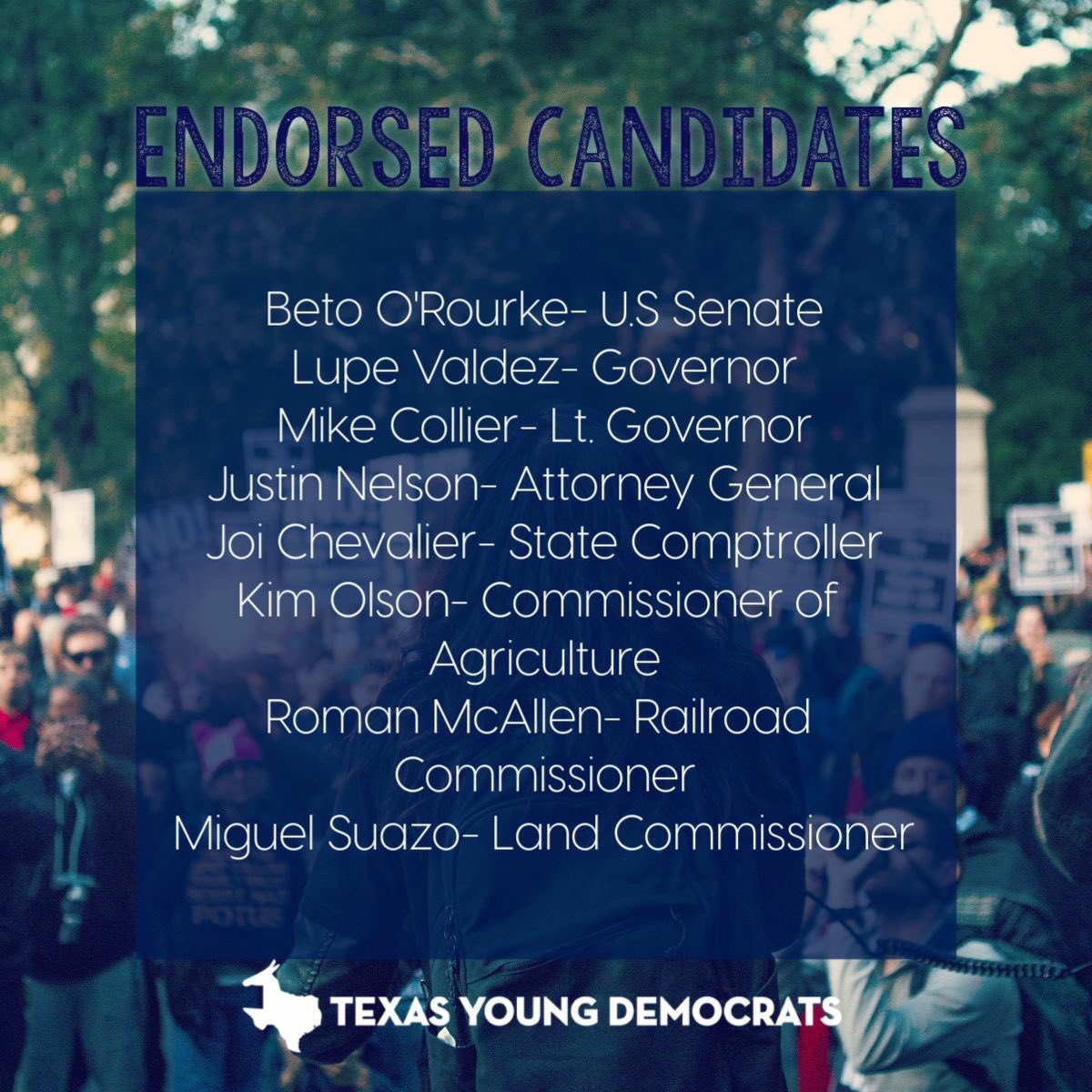 Official press release: https://www.texasyds.com/blog/texas-young-democrats-announces-endorsements-ahead-of-2018-general-election …