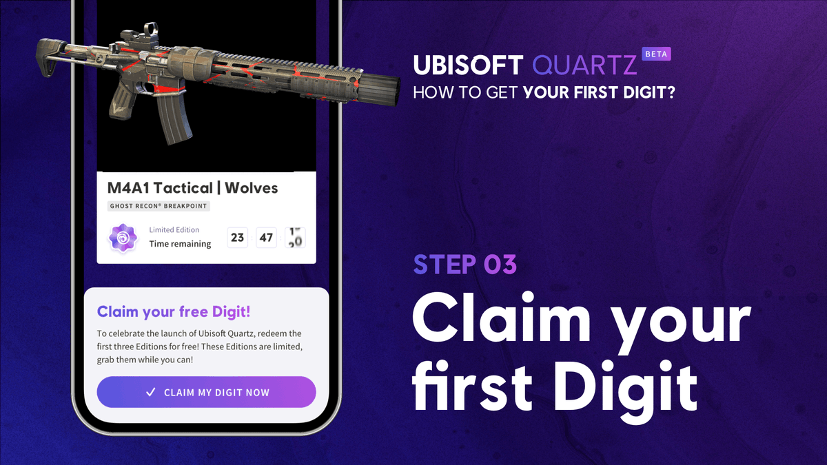 Wondering how Ubisoft Quartz works? How to claim your free Digits? Let us show you how. All you need to know about Ubisoft Quartz Beta: https://quartz.ubisoft.com/ pic.twitter.com/sZORCZyrHp