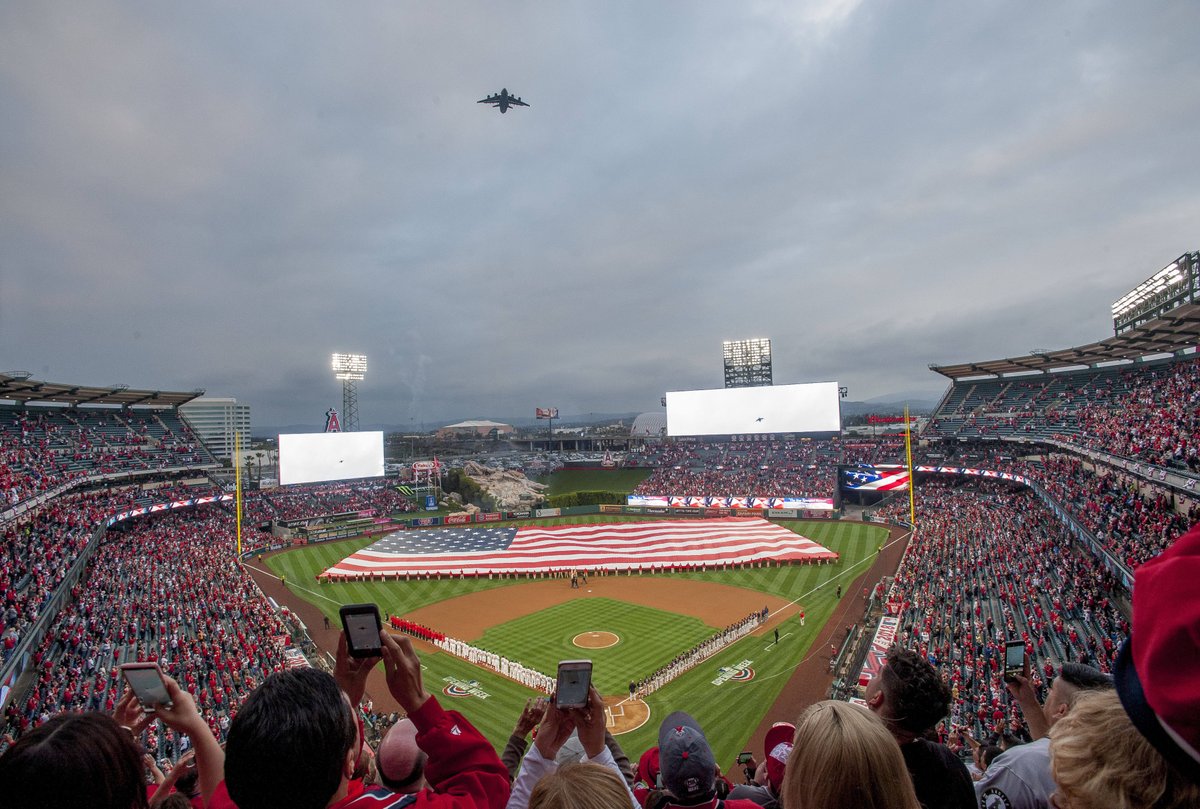 Opening Day at Angel Stadium: Food, Big Screen, Jumbo Aircraft, Fireworks, Virtual Reality, and oh yeah Shohei Ohtani introduced. My video coverage: https://youtu.be/aQyuVB4Id_Q pic.twitter.com/xEMlgCHkf7