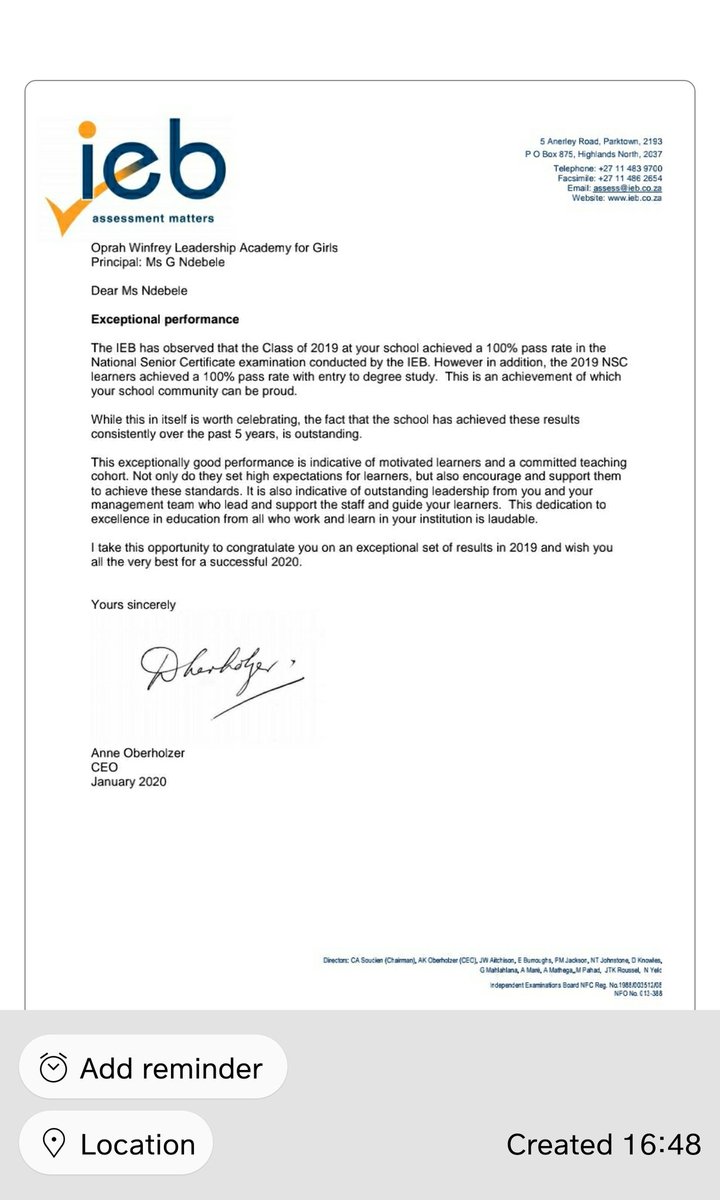 @Oprah Winfrey Leadership Academy from the IEB for exceptional achievement in Gr12. Great teachers and support services (psychosocial), inspired girls,comprehensive curriculum and supportive leadership (board and school) makes a great combo#siyaqhuba#MyOWLAGgalspic.twitter.com/ogfb7FIiiO