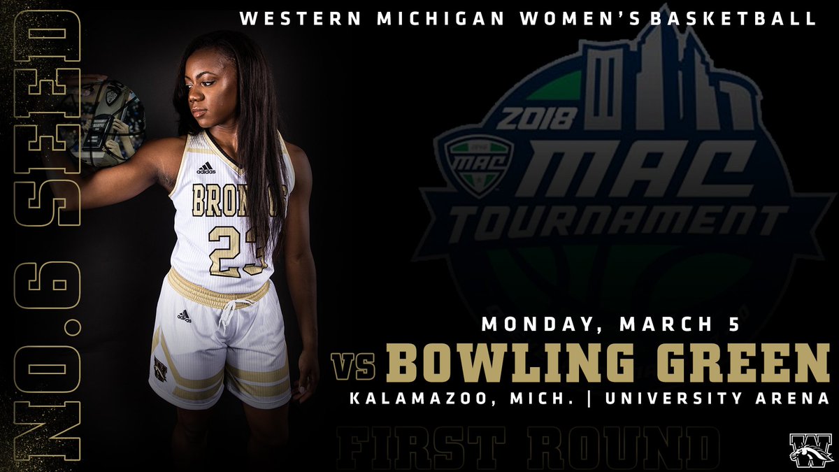 @WMU_WBB is the No. 6 seed in the MAC Tournament and will host No. 11 Bowling Green Monday at 5:30 PM at University Arena.@WMUMBB game vs. Akron (also a No. 6 vs. 11 matchup) will follow, 7:45 approx. tip.#WeWillReignpic.twitter.com/2dfhuodnBz