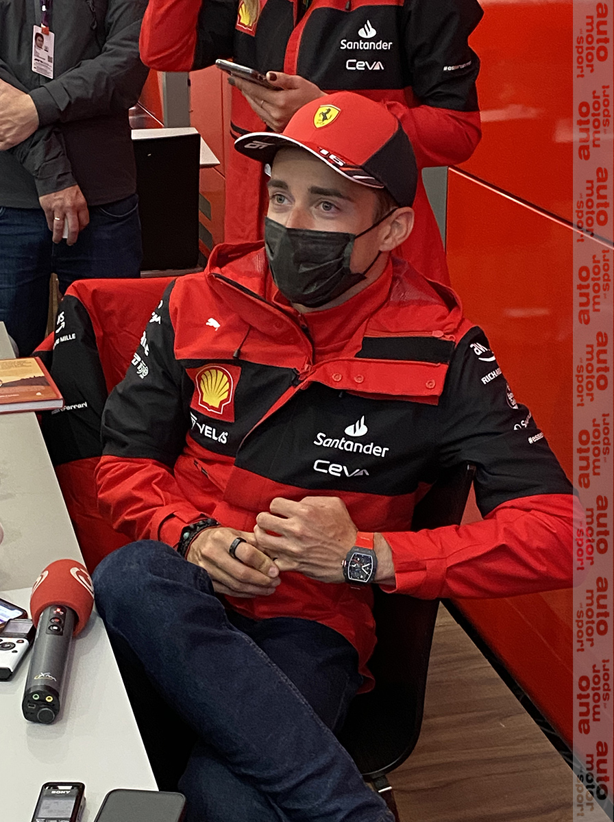 Charles Leclerc in a very relaxed mood today talking to the press at Imola. And he already got a new watch.