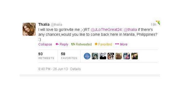 That would be awesome @JLoTheGreat24. Your Filipino fans would be sooooooooo HAPPY @thalia. Por favor, hacer una visita aquí en Filipinas!!