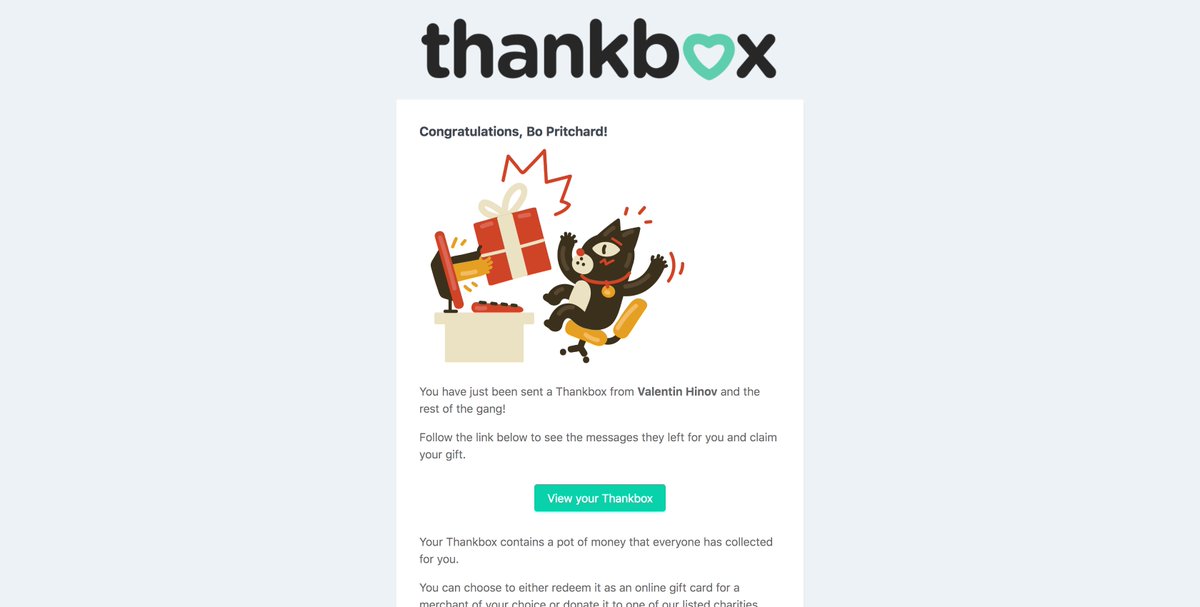 We're playing around with the emails Thankbox will be sending out to lucky recipients! What do you think?pic.twitter.com/YT8rw0oQK3