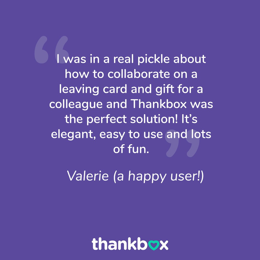 Thankbox is perfect for when you're looking to remotely say goodbye to a colleague. Just send a link around the company and then send on to the lucky recipient. It's like a card discreetly being passed around the office, but without the card... or the office.
