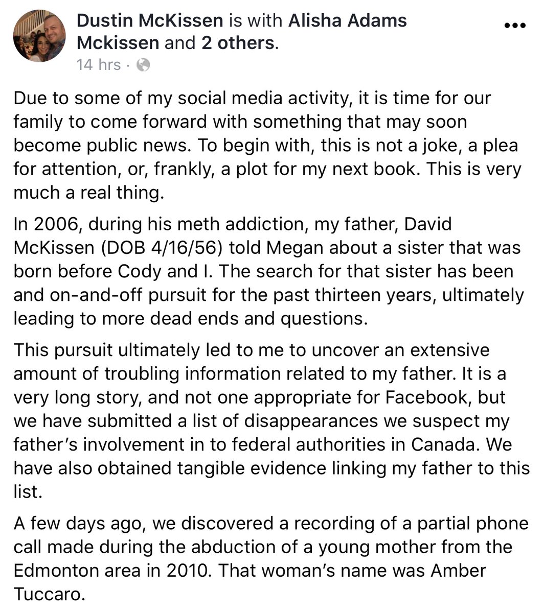 Amber Tuccaro's family may finally get the answers they've been searching for for nearly 20 years. I covered Amber's murder in episode #29, including the haunting voicemail with her unknown murderer. His son believes he had identified that voice as his father, Dave McKisson.pic.twitter.com/rDo1ylBScv
