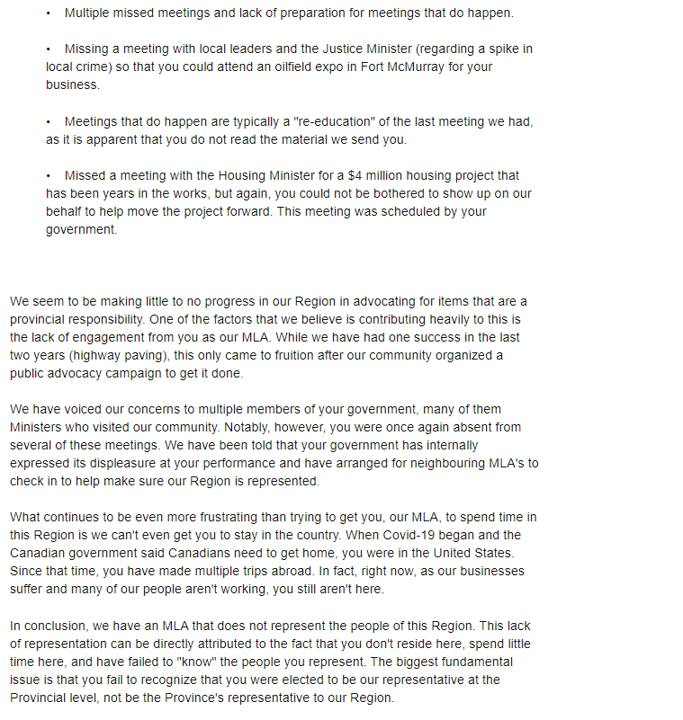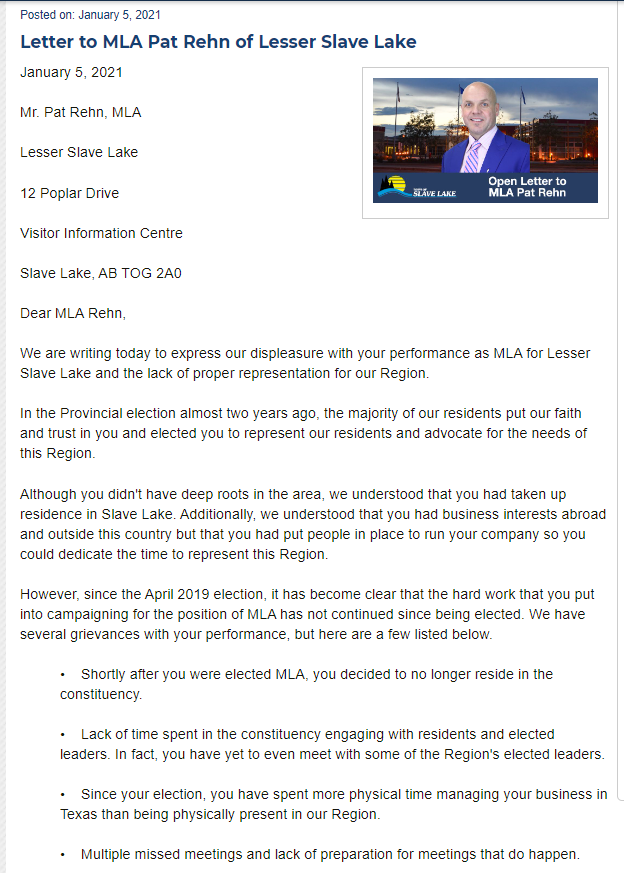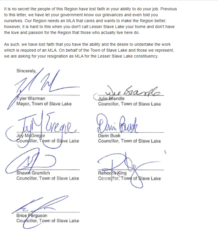 The mayor and council of Slave Lake wrote a PFO letter to MLA Dave Rehn and it is a beauty. #ableg #ResignKenney #Resignallyall