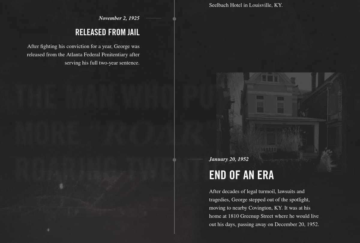 The Scoundrel topic this week is George Remus. Someone named a bourbon brand after him and brand's site's timeline is...choosy... - 1925: George was released from prison for bootlegging - SOME OTHER STUFF HAPPENED DONT WORRY ABOUT IT - 1952: George diedpic.twitter.com/5MhQ9TdkDR