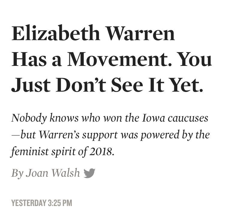 This is important, no whining about fairness. Don’t despair and start talking about how “oh it’s all over they’ll never let us win.” We ARE winning and will bring this same energy to NH NV SC and CA. Let them try to stop us. If we all keep doing what we did here they can’thttps://twitter.com/NaomiAKlein/status/1224695161353121793 …