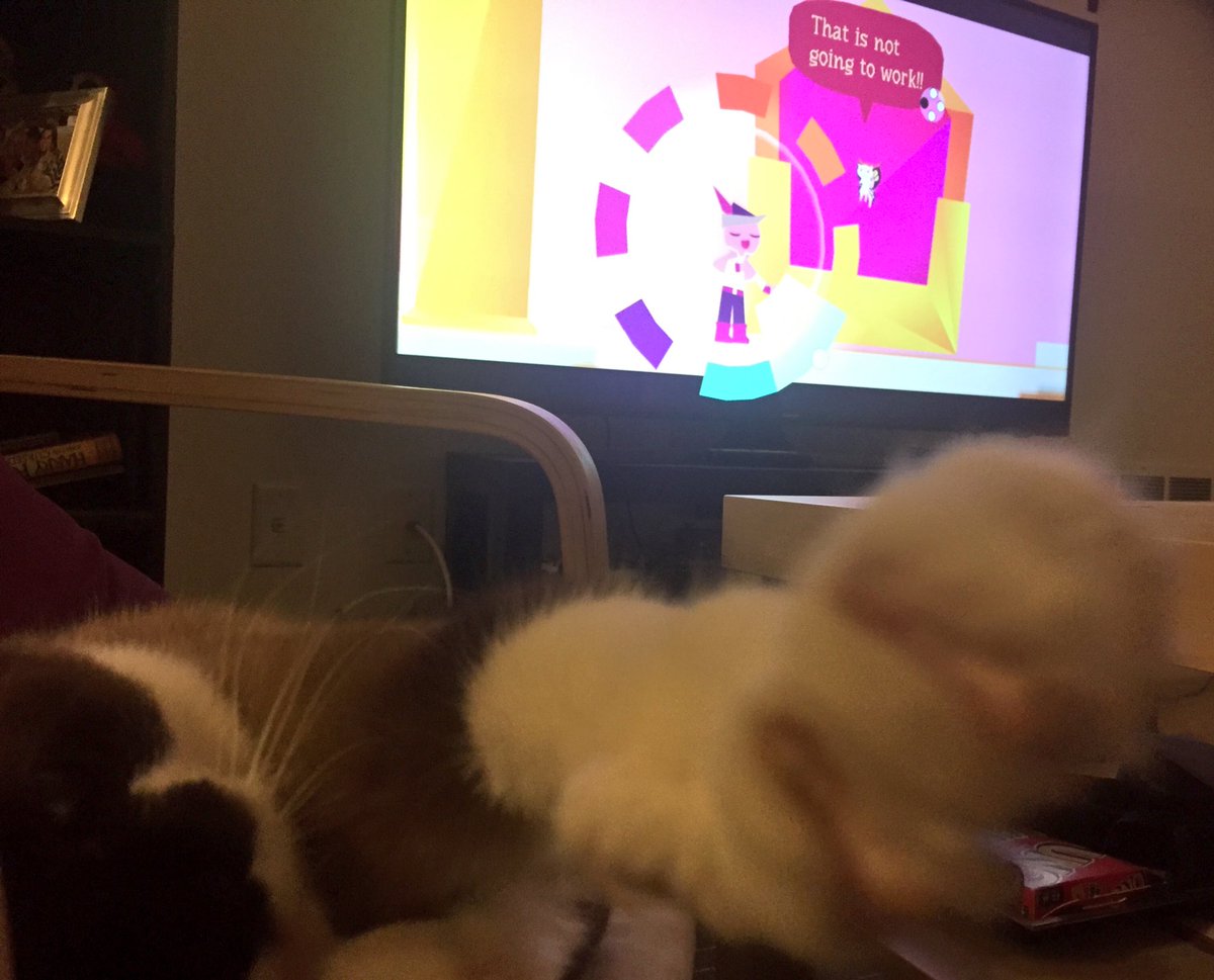 Playing @Wandersong_game with @lisamiller321 tonight and having lots of fun! The narrative is cute with really expressive characters, and the world is filled with cool touches like getting to make the tune for the candy shop. Elsie also enjoyed the tunespic.twitter.com/onUnlQW66K