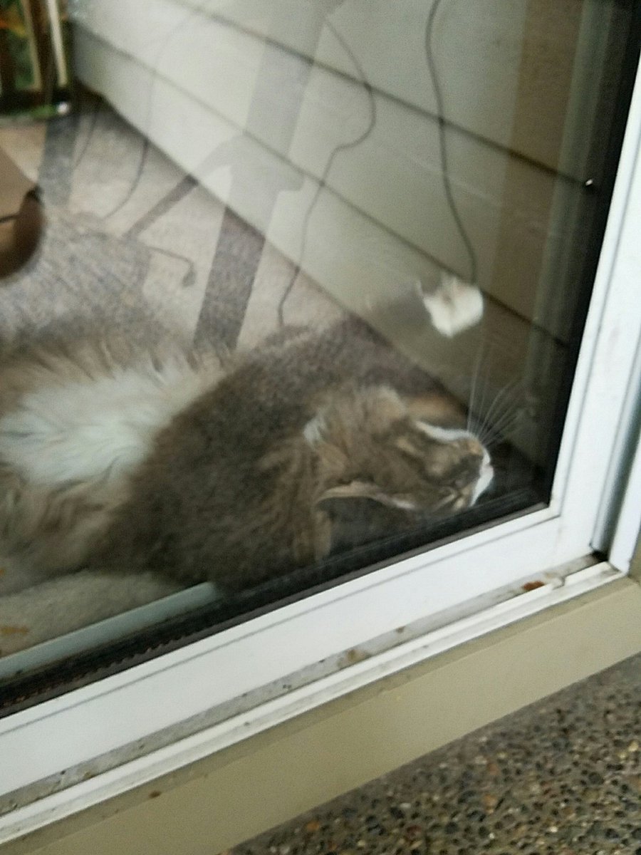 Welp. It finally happened. Grey Cat locked me out on the god damn deck. Wife is on set... I am going to be here for hours.pic.twitter.com/DAD4SZoWlE