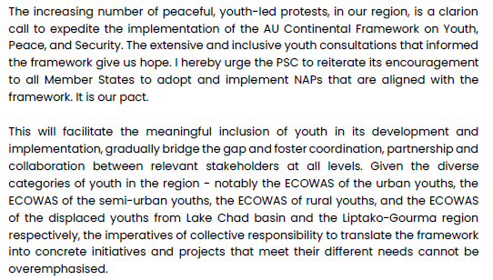 #Mali@MoctarKAN calls on the#AUPSC to support implementation of#NAPs for#PVE in#WestAfrica, calling recent youth-led protests across the region a "clarion call". "It is our pact," he said to the@AUP today.#silencingtheguns#PVEpic.twitter.com/2TlN1Vg62A