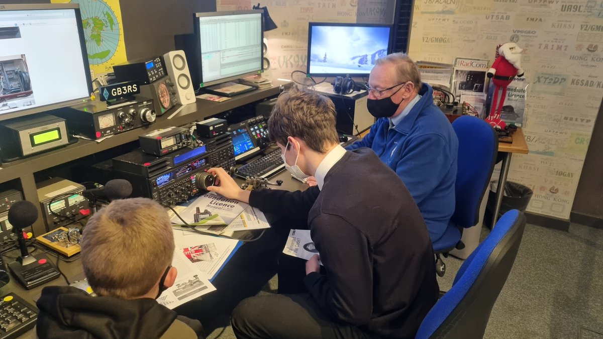 @hamyota YOTA Month 2021 activation when the call sign was hosted by Hilderstone Radio Society. The photo shows Caitlin and Alice passing greetings messages with Ian Keyser, G3ROO in the background#hamrpic.twitter.com/3ihbv14WVS