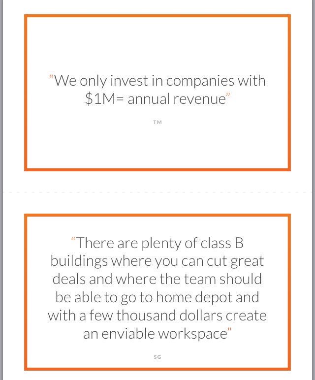 We had an angel push back on us investing money into a renovated office - suggested we “Go to Home Depot” and do it ourselves. I shit you not. I printed that out and hung it on my wall.pic.twitter.com/OQ2GxON59E