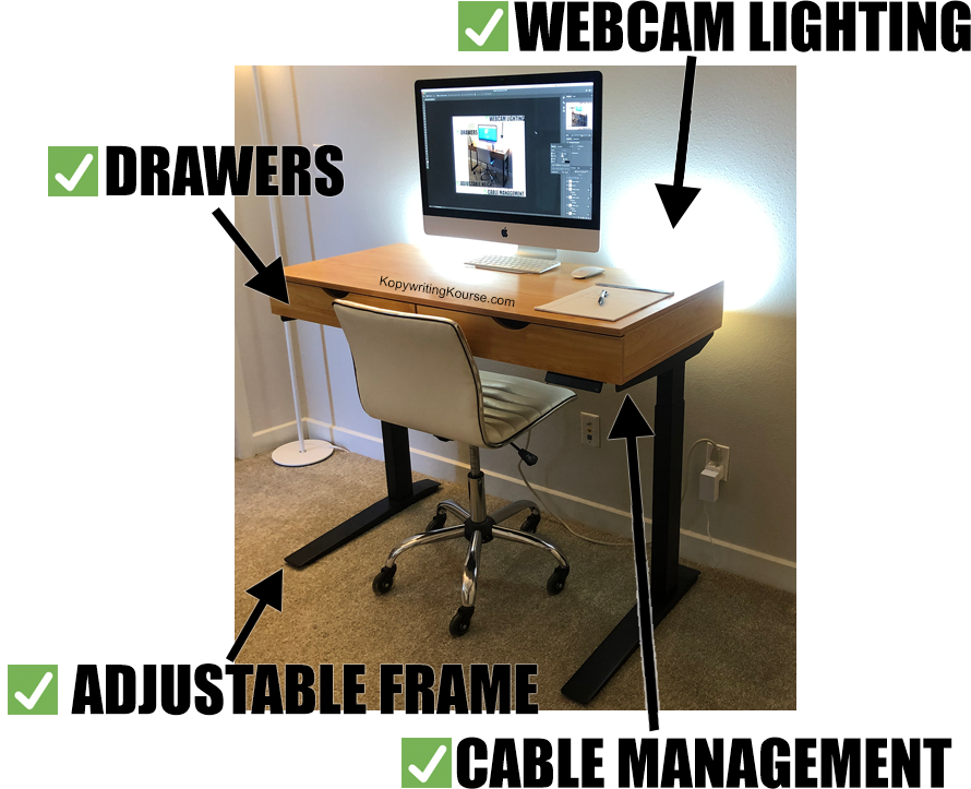 https://www.amazon.com/gp/product/B01LSHM2HM/ … not sure if I’m stock anymore, but just a regular old desk with drawers.