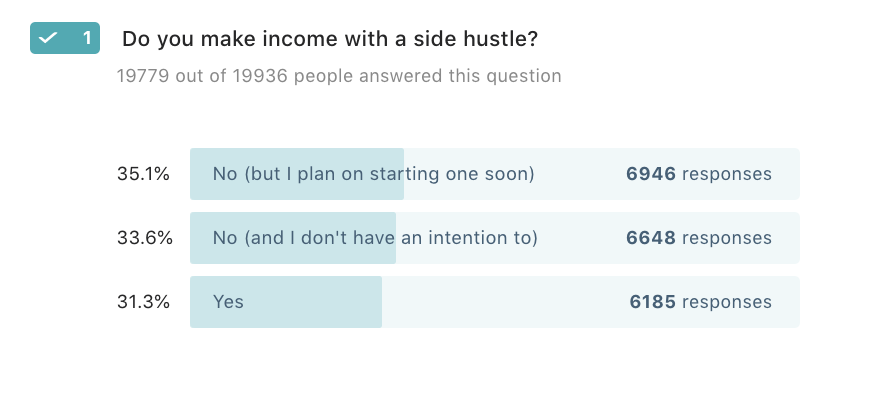 It would be cool to ask that in your next survey, is your side hustle for extra cash or because you love it?