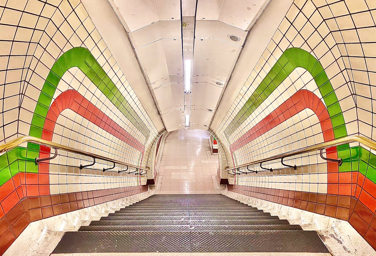 The other week I took photos between the hordes at Piccadilly Circus. Millions of us use this station but possibly don’t notice the consistent ribbon tiling pattern running throughout... or spot the staggered Bakerloo platforms, like a window into a parallel Underground Universepic.twitter.com/1y4Lz3alSq