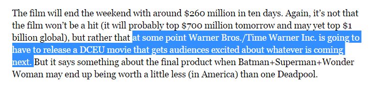 Its worse than thought: BATMAN V SUPERMAN loses 80% of its Friday to Friday box-office. Clearly, critics dont matter http://www.forbes.com/sites/scottmendelson/2016/04/02/box-office-batman-v-superman-plunges-record-81-for-15-35m-friday/#3891d27935dc …