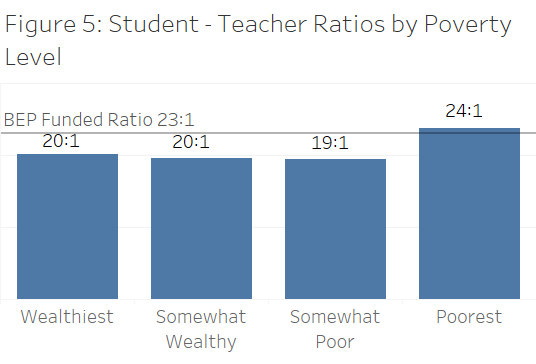 Tennessee’s state funding formula funds about one teacher for every 23 students. Wealthier districts put in more money to reduce that ratio to 19-20 students per teacher, but the poorest districts instead average a student-teacher ratio of 24:1.pic.twitter.com/RDJVvXx541