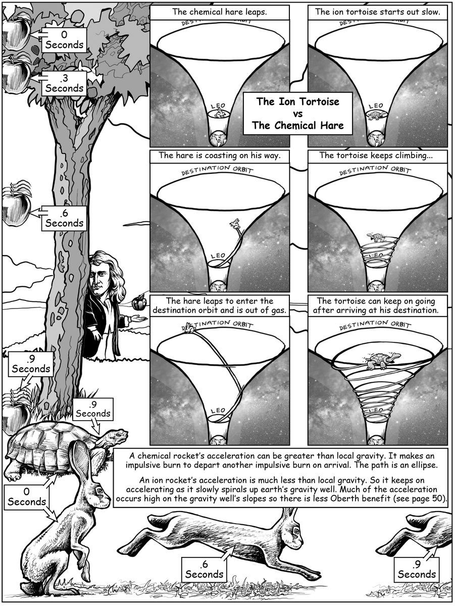 Still working on my coloring book. Trying to convey the notion that if a rocket's acceleration is a tiny fraction local gravity the transfer trajectory is a spiral rather than ellipse.pic.twitter.com/5VmXrq2CHz