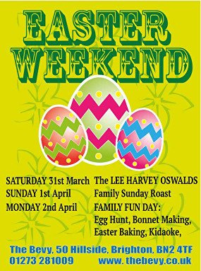 Confused what day it is? Gather your senses with a Bevy roast. Monday we have a family friendly egg-hunting, egg-baking, bonnet-making, kid singing bonanza from 1 till 5.