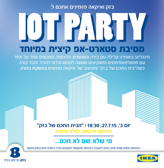 Hi all, Come and meet us today on 18:30, at the IOT party, IKEA complex, Netanya. We'll be pitching... Cheerspic.twitter.com/aEyYH7y2tv
