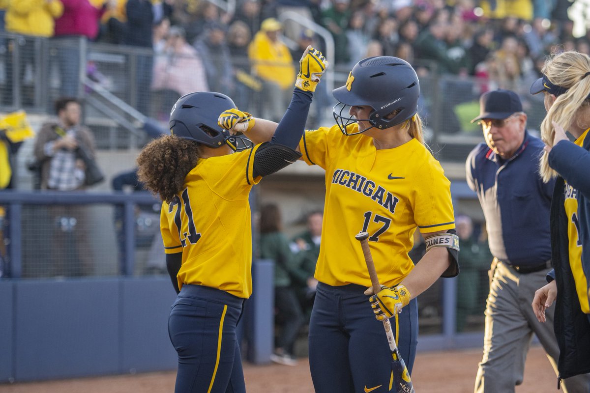 @umichsoftball dominated rival Michigan State, defeating them 16-1. Here is part one of celebrations from the game (for@michigandaily):pic.twitter.com/ESPnSFRgHM