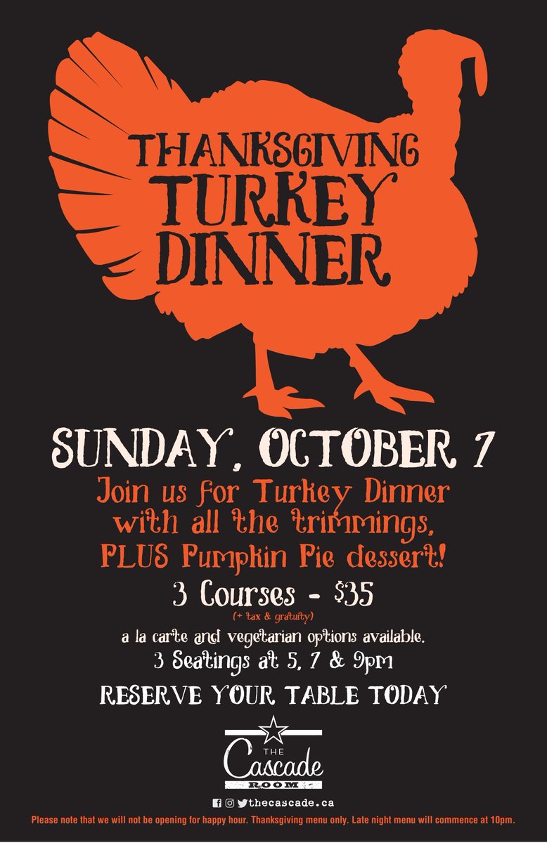 Now taking reservations for Thanksgiving Turkey Dinner on Sunday, October 7th. 3 courses for $35, vegetarian option available. Book your dinner party today and let us do the cooking.