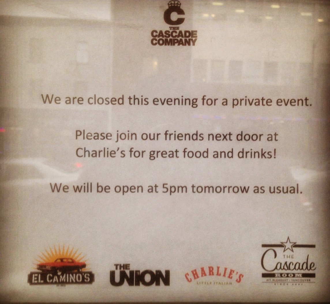 Sorry friends, we are closed for a private event tonight. See you tomorrow starting at 5:00 pm.pic.twitter.com/KXXLV9Pz80