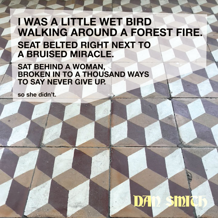 I was a little wet bird walking around a forest fire. seat belted right next to a bruised miracle. sat behind a woman broken in to a thousand ways to say: never give up. so she didn’t.pic.twitter.com/wy81N0ln8J