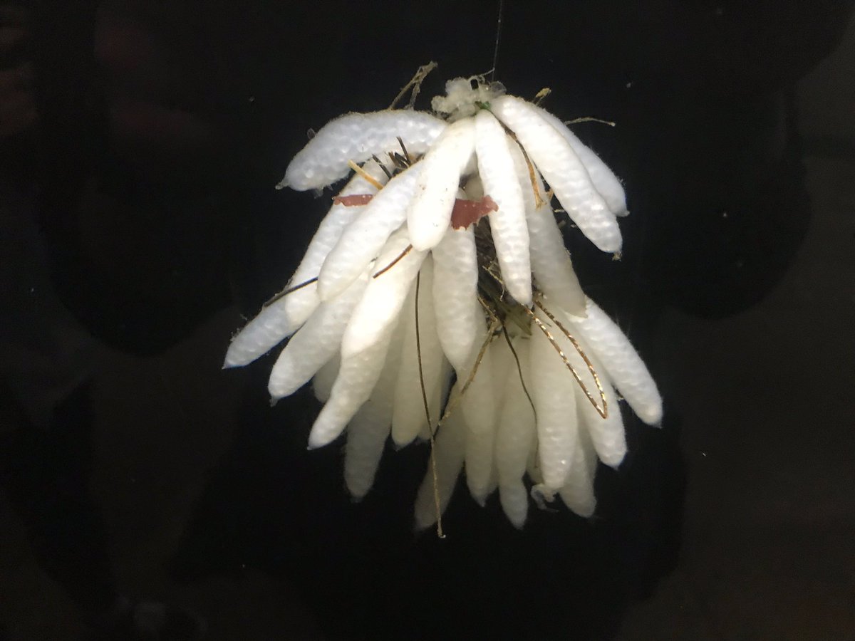 Because they’re produced in shallow water where there’s waves and surge, squid eggs have a protective coating to keep them from getting crushed.