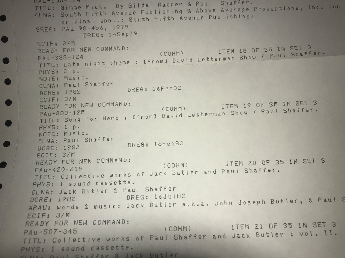 Because I've no life, I've begun cataloging WMDB break songs. Two from early Feb. '82 have me stumped; Booker T/MGs-like ballad but not them. Wondered - originals? Found in LOC ©: "Song for Herb" specifically for LN. Ring a bell, @paulshaffer?pic.twitter.com/Ri9uXsh7Jy