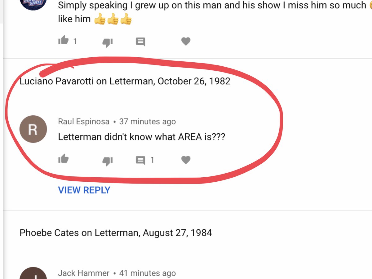 Send Mr. Espinoza a link to Drew Barrymore’s 1995 appearance. See if he can figure out the anatomical term for which Dave’s shorthand version is “AREA.”pic.twitter.com/SVmoWGe4HB