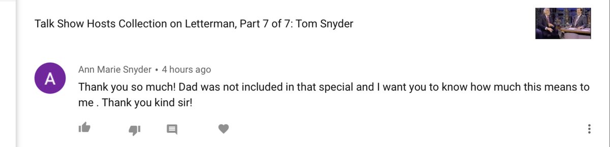 That’s fantastic Don, her dad was a legend and in my opinion is too often overlooked these days. No offense to any of today’s hosts, but I would take Tom Snyder over any of them, he could do serious or goofy and everything in between.