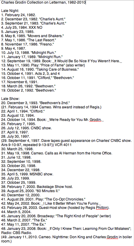 Grodin was listed as a guest in one show log that had been created by a long-time LN (and LS) staffer, so I included it in the tally. But after watching the show, I realized it was incorrect. He didn’t appear. I just forgot to edit it out when sharing here.
