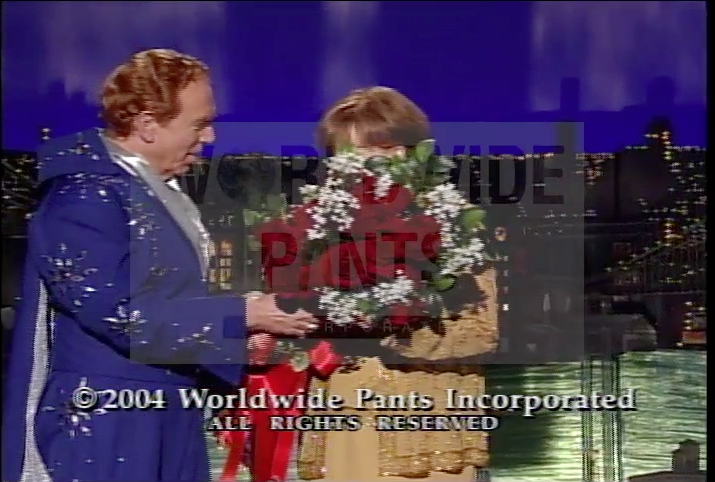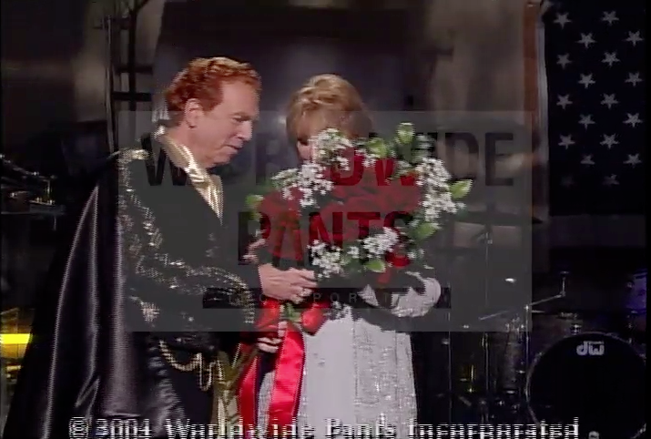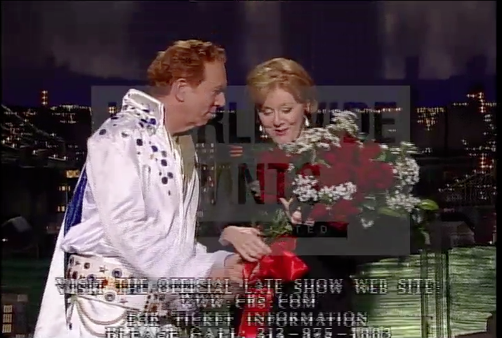 Beginning 5-11-04, nearly nightly, Alan gave Margaret Hall a bouquet of roses at the show close. Lasted for 8 months 'til 1-7-05. First with a suit, then, from 8-23-04 on, an Elvis outfit, later alternating white, black, and blue. No one knows why.pic.twitter.com/kZYsMDN3NW