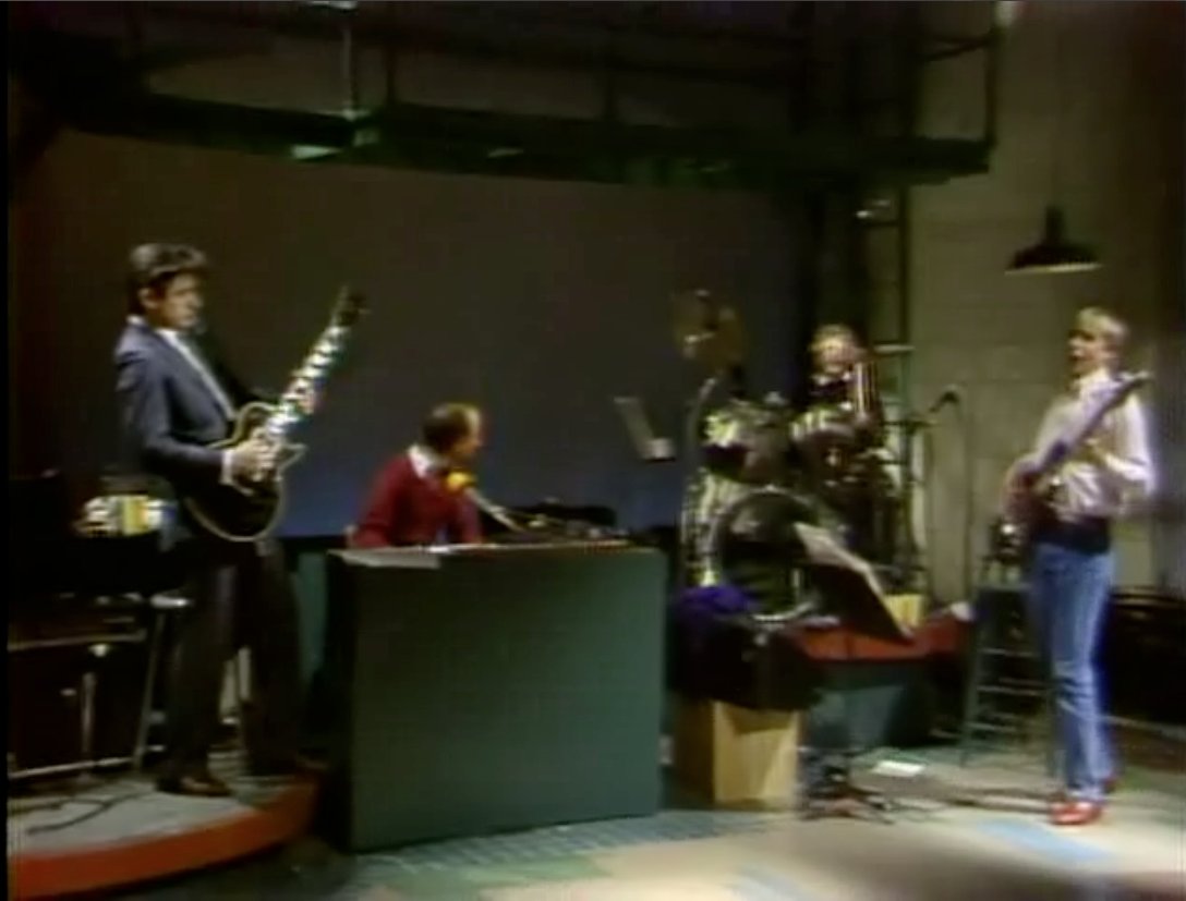 Among those in the front is drummer Alan Schwartzberg, who subbed for Steve Jordan January 23-26 that year. (Steve was recuperating from a leg injury during a recording session; Hiram had broken _his_ leg the year before.) (2)pic.twitter.com/9igKW812vO