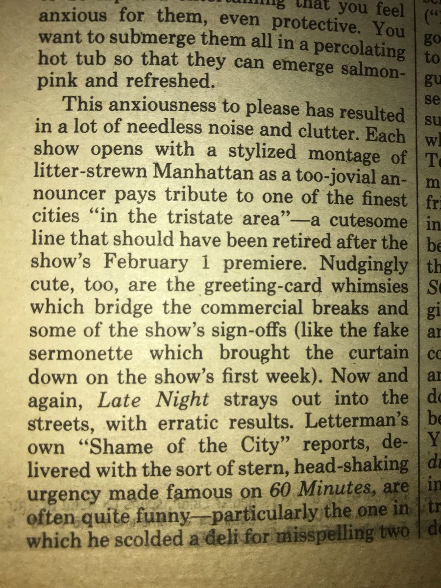 James Wolcott's review of Late Night's first weeks in Village Voice, March 2, 1982 5/14 @JamesWolcottpic.twitter.com/VgGfN2sdsh