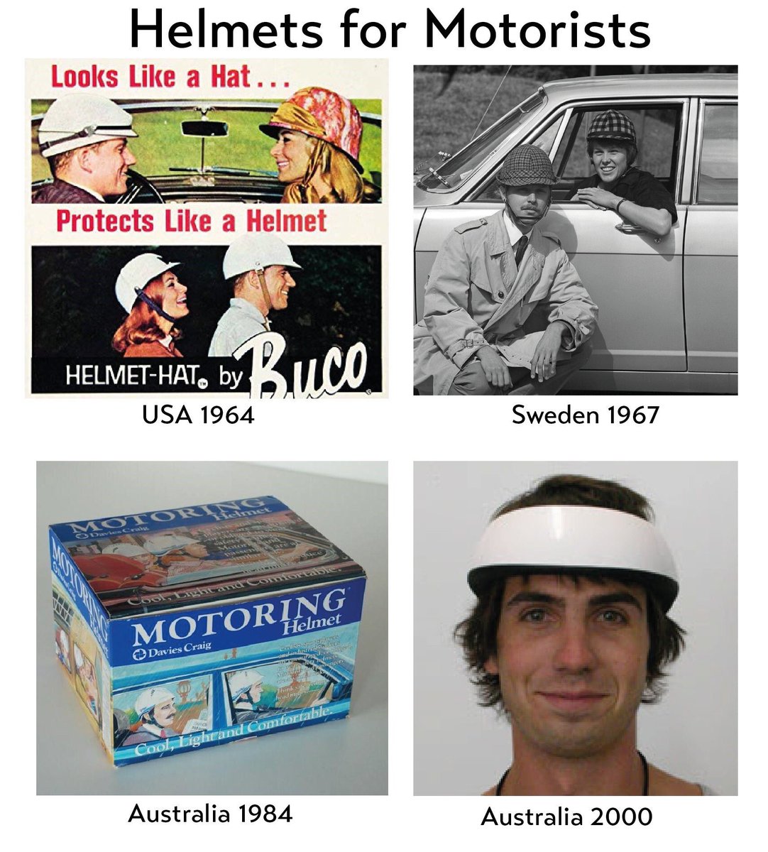 The reason many cyclists wear cycle helmets and no motorists wear everyday car helmets has nothing to do with safety data and everything to do with screwy societal norms. https://www.forbes.com/sites/carltonreid/2020/01/23/new-york-state-governor-mulls-car-helmet-compulsion-to-discourage-motoring/#6947c398bef4 … pic by