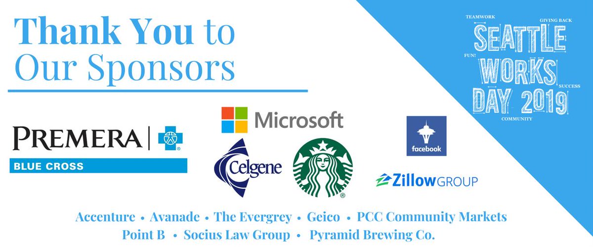 @premera @ZillowGroup @Starbucks @theevergrey @AvanadeInc @PyramidSEA @PCC @Accenture @PointB @GEICO @Microsoft#PremeraSocialImpact#SWDay