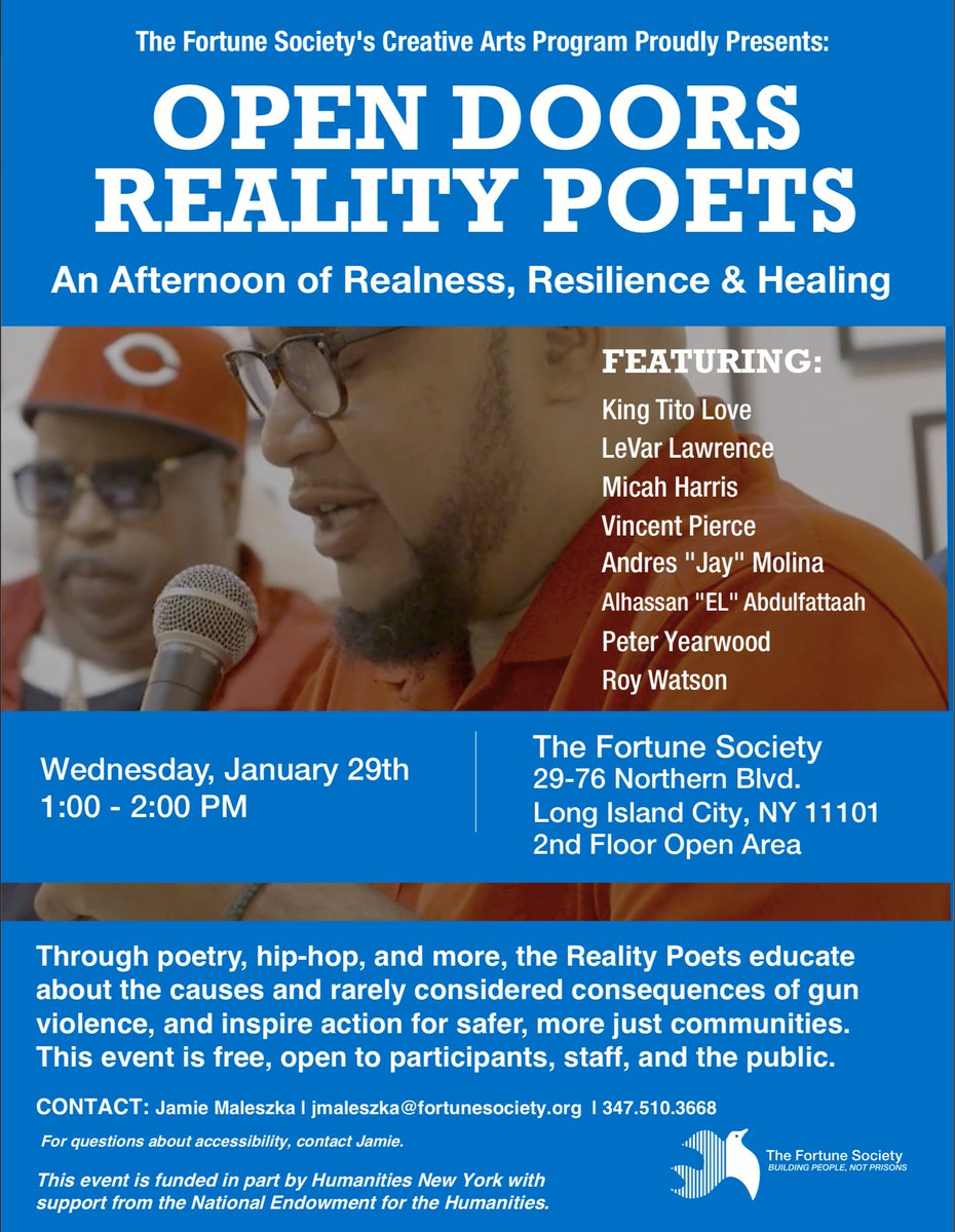 @opendoorsnyc#RealityPoets. This event, made possible in part by@humanitiesny and@NEHgov, will raise awareness about#GunViolence and inspire action through poetry, hip-hop, and more.pic.twitter.com/LvEfLIgS22