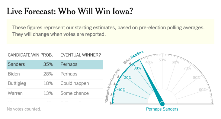 Feel like we are getting too little meaningful info re:caucuses so far. But I think the biggest surprises are: Mayor