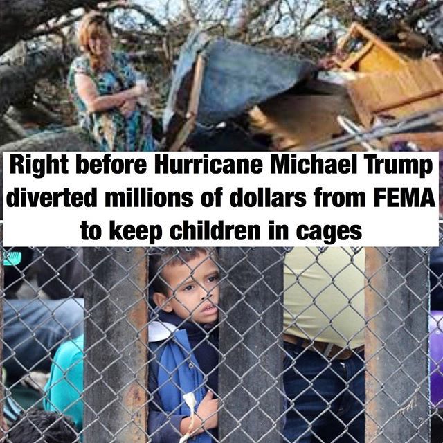 @nbcnews@realdonaldtrump took millions of dollars from the@fema budget right before#hurricanemichael2018 in order to put more immigrant children in cages...Trump and the Republicans aren’t just incompetent and loathsome, they’re simpl…pic.twitter.com/3wTaxyXqRg