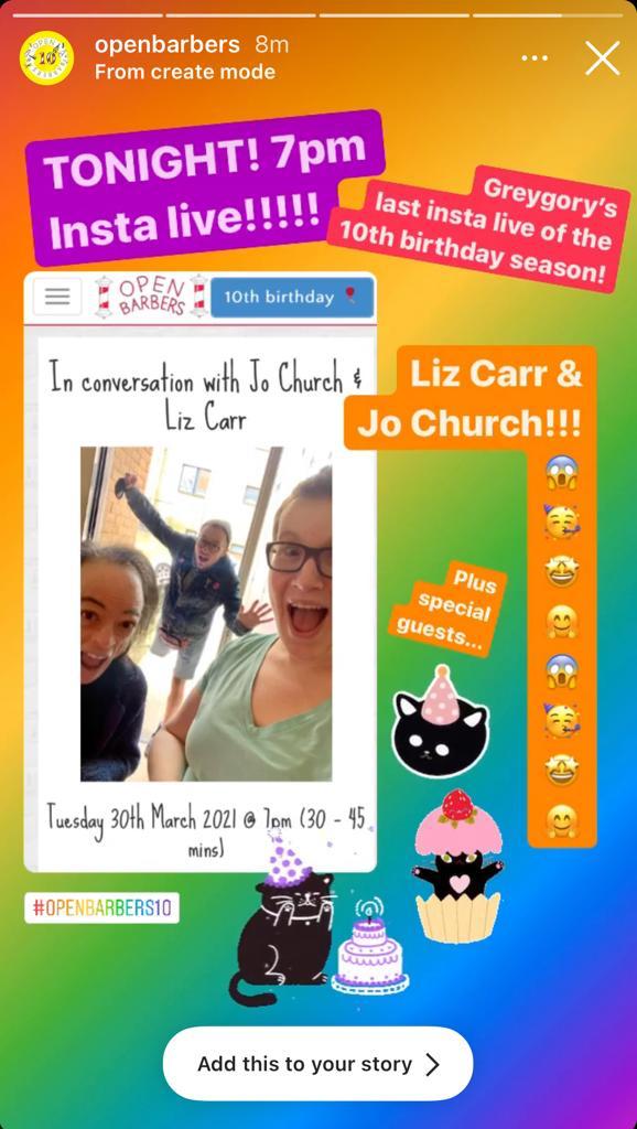 @thevjoiners Tue 30th 7pm when we celebrate@OpenBarbers 10th birthday with an InstaLive interview