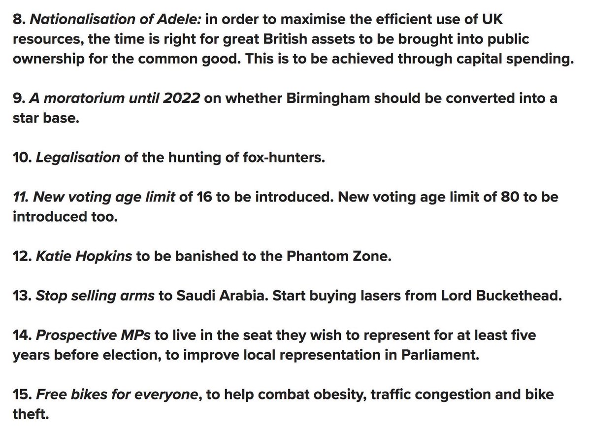 Lord Buckethead’s political manifesto is worth a read. Point 9 being a biggy.pic.twitter.com/RFqQKpKYas